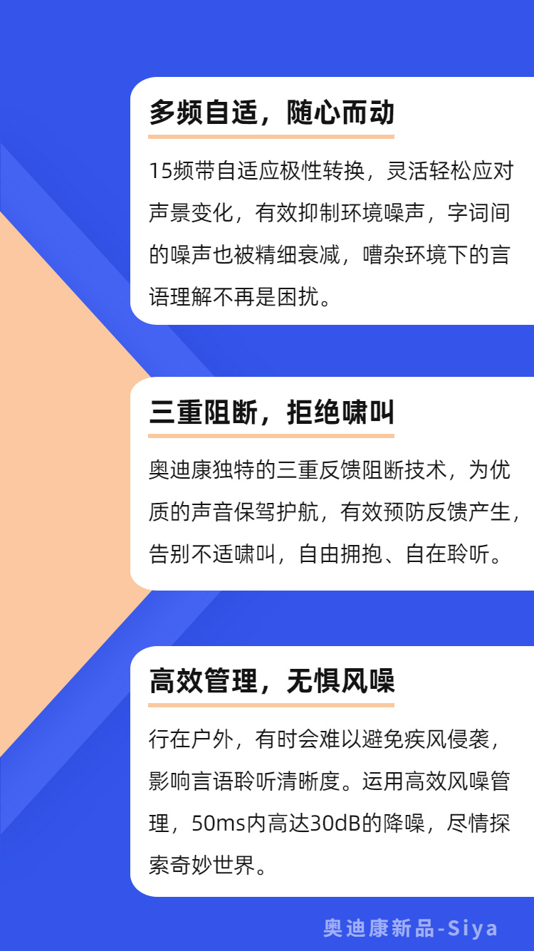 探密奥迪康Siya助听器,有何不同 导读:奥迪康Siya助听器,小小机身,蕴含大大能量。优质的聆听不再意味着高昂的付出,奥迪康Siya助听器已全线登陆中国,为您带来全新听觉盛宴。 相关文章:峰力络易聆直连型-工作,沟通无阻碍相关文章:社交,零距离-峰力络易聆直连型,360度自动收声音