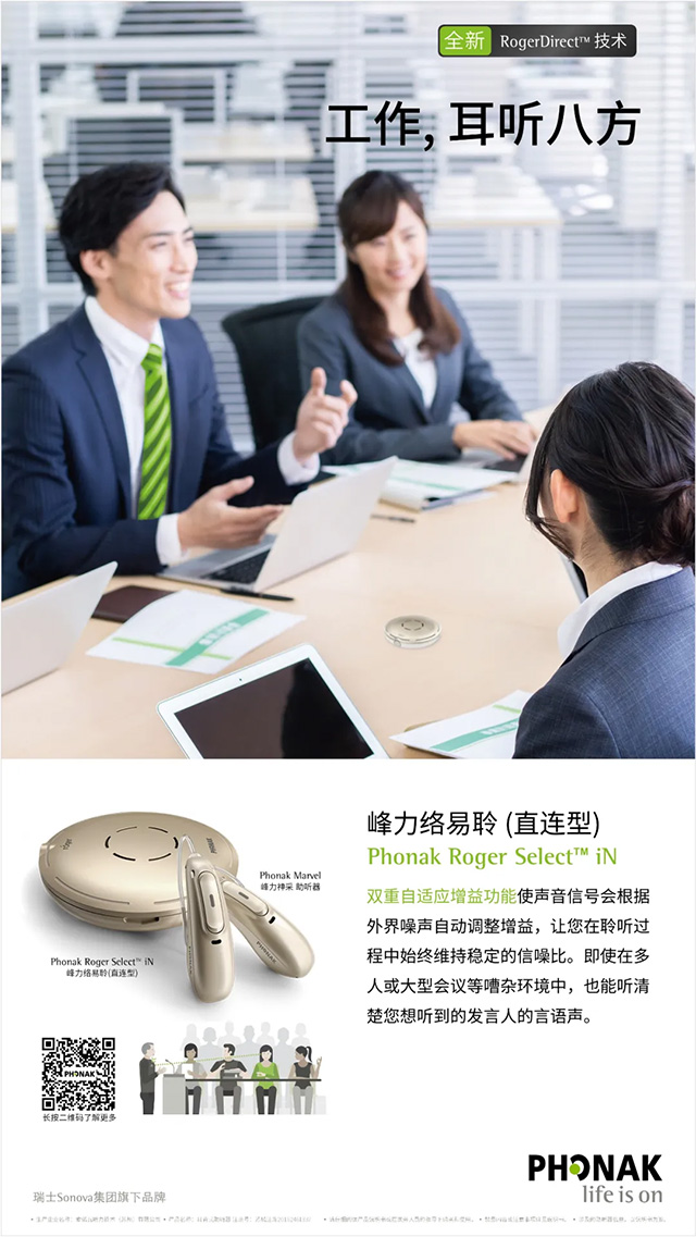 峰力络易聆(直连型)Phonak Roger Select iN。双重自适应增益功能使声音信号会根据外界噪声自动调整增益,让您在聆听过程中始终维持稳定的信噪比。即使在多人或大型会议等嘈杂环境中,也能听清楚您想听到的发言人的言语声。
