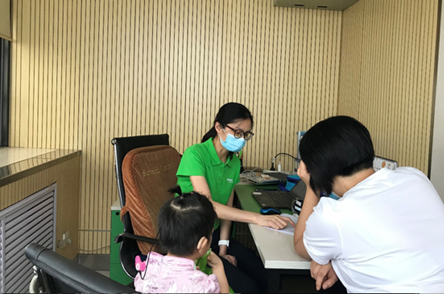 峰力培训部经理许海燕女士为家长科普听力健康对言语语言发展的重要性。面对需要试听美人鱼·神采助听器的听障小朋友,精准检测其听力情况后,详细了解顾客的日常生活环境和聆听需求,根据小朋友的聆听需求个性化定制听力解决方案,并指导家长在日常生活中注意观察孩子对声音的反应。听力康复不是一蹴而就,需要长期的调试与适应,但我们的目标都是帮助听障孩子积极健康的生活。