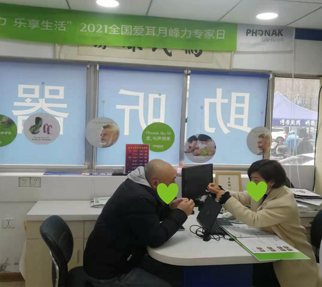 但是他目前戴的助听器接听电话效果不是很好,所以他每次接听电话时都是先把助听器拿下来然后再听。所以金先生也非常希望此次能够帮他解决这个问题。当我把峰力奥笛·天朗助听器给他戴上试听时,他觉得音质很好,听大家讲话也很清晰。