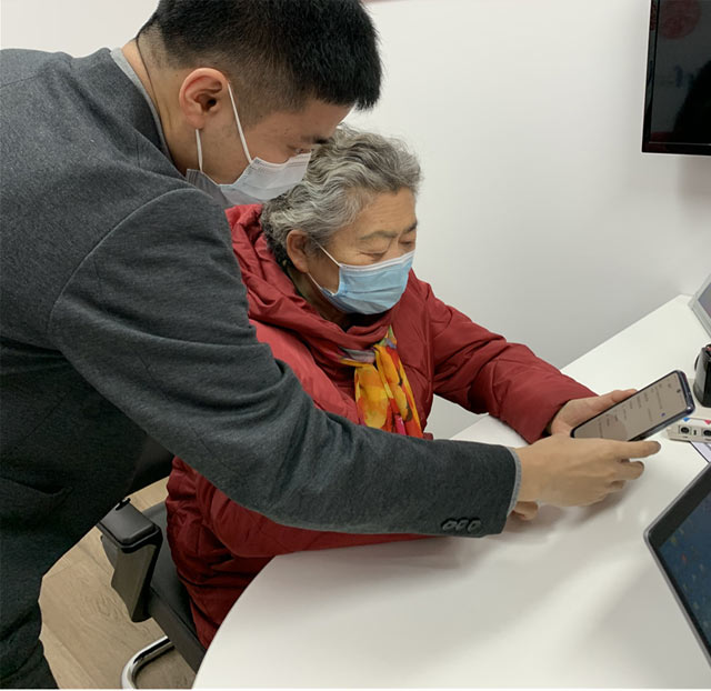 所有检查完成后,向刘奶奶推荐试听奥笛·天朗充电款,效果非常好,助听后言语识别率达到95%,户外嘈杂环境聆听非常舒适,不嘈杂。直连pad听歌剧很享受。刘奶奶对助听器可以充电非常感兴趣,认为非常方便,体验非常好。
