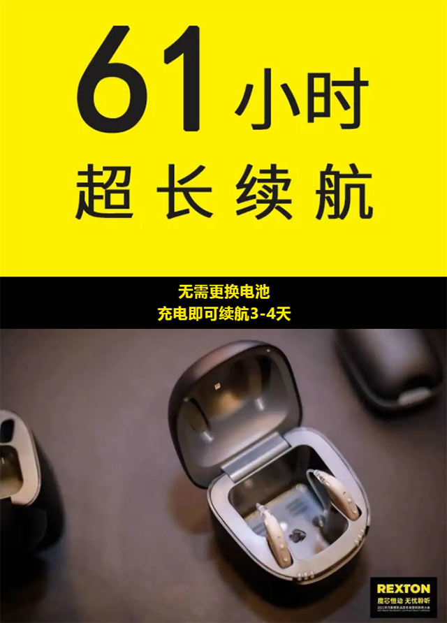 新产品支持较长61小时的佩戴,足够聋儿3天佩戴,家长只需要定期为助听器进行充电,助听器足以应付一整天的佩戴,不用担心随时断电。