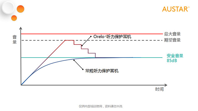 欧益尔听力保护耳机拥有独家安全音量控制技术,可自动侦测分贝数,超过安全聆听范围,将逐渐降低音量至85分贝,减少用户落差感,有效保护听力健康的同时,舒适聆听。