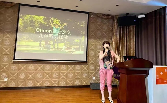 濮阳奥迪康助听器验配中心成立于今年3月份,恰逢暑假期间,特此举办丹麦奥迪康新品Opn Play/Xceed Play儿童专场路演。会议伊始,由门店负责人席彩霞主任做开场致词,席主任介绍了自己的从业经历、门店概况、主营品牌、以及完善的售后服务。